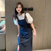 Sandro Moscoloni春夏新款减龄显瘦气质开叉牛仔背带裙炸街两件套