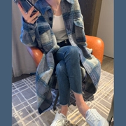Sandro Moscoloni格纹羊毛呢外套法式小众廓形蓝色格子中长款大衣