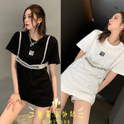 AlexanderWang亚历山大王奚梦瑶同款假俩件蕾丝吊带T恤拼接短袖衫