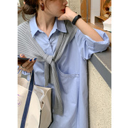 ACME 韩版收腰显瘦休闲连衣裙21夏季新品法式圆领a字裙中长裙裙子