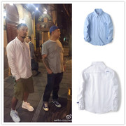 休闲长袖衬衫男士百搭MDNS MADNESS余文乐潮牌纯色牛津纺修身衬衣