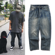 MDNS MADNESS余文乐潮牌泼墨牛仔裤男新款口袋直筒裤宽松休闲长裤
