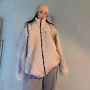 DDT 街头嘻哈羊羔毛外套女冬季休闲oversize宽松两面穿毛毛外套潮