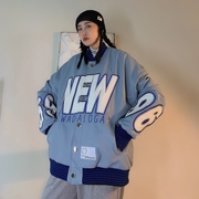 DDT美式复古街头加厚外套女冬季宽松嘻哈休闲棒球衣ins男女夹克潮