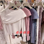21秋冬S家新品女 纯色优雅露肩蕾丝拼接套头罗纹针织衫SWNT214117