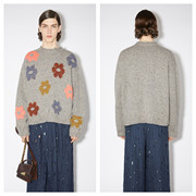 瑞典代购Acne羊毛混纺彩色花朵提花图案做旧破洞长袖针织衫毛衣