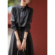 sandro selen复古收腰气质显瘦长裙法式衬衫连衣裙女设计感小众夏