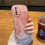 适用于华为p60pro手机保护壳新款创意镜头全包p50潮牌波浪边设计p30网红女高级感p40pro的保护曲屏水墨纹晕染橘粉