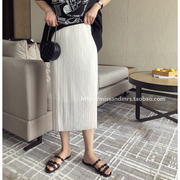 MissMrs韩国正品2021新款背后开叉气质褶皱裙弹型半身裙 奶白 特