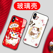 新年苹果8plus手机壳x女款xs玻璃xr镜面xsmax潮牌7plus创意iphone可爱6splus卡通8保护套5/5se同款支架招财猫