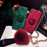 紫毛绒球苹果XS/XR/XsMax手机壳带挂绳7p潮牌满水砖6祖母绿大理石
