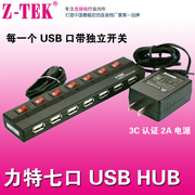 Z-TEK力特 USB分线器 7口 USB2.0 HUB 带电源 USB集线器 ZE532A