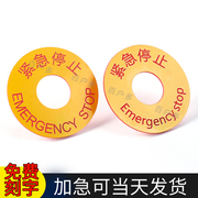 22mm急停标识牌紧急停止标示牌EMERGENCY STOP定做定制双色板塑料亚克力机械设备按钮开关警示牌订做订制60