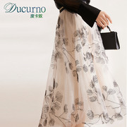 Ducurno21年新款春夏款半身裙女中长款高端重工花纹刺绣复古纱裙