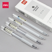 得力按动中性笔学生用考试水笔黑色碳素水性笔无印风0.38透明杆签字笔按压式全针管0.35黑笔替芯文具用品笔芯
