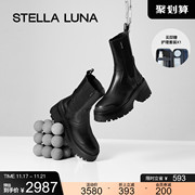 STELLA LUNA女鞋2022秋季新款切尔西靴百搭休闲牛皮潮流厚底踝靴