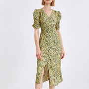 YT&UR 2021夏季新品时尚夏日碎花收腰开衩连衣裙女WG22R7AE2000