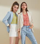 依恋棒球服女2023春秋款学院风宽松拼接撞色刺绣短外套EEMTD12N04