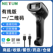 NETUM有线一二维码扫描枪商超市便利店屏幕手持支付收银快递物流烟草条码无线扫码枪商品盘点手机扫码器收款