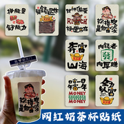 奶茶杯贴纸logo标签饮料咖啡杯标签网红一次性防水嘟嘟杯趣味创意桶身包装封口贴可爱清新现货不干胶可定制