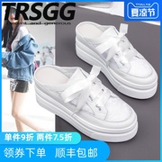 TRSGG厚底半拖鞋女2019夏季新款懒人鞋时尚外穿蕾丝女鞋松糕拖鞋