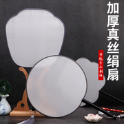 三味斋加厚真丝绢扇大号加长黑檀木真丝宫扇空白工笔画手工圆形扇子DIY材料熟绢古风素面扇创作书法作品扇面