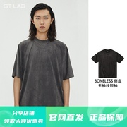 BONELESS经纬坐标印花基础麂皮短袖男夏季宽松美式高街T恤女STLAB