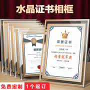 水晶玻璃证书奖牌定制定做授权框荣誉a4企业优秀员工获奖颁奖表彰