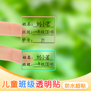 儿童幼儿园姓名贴纸小学生班级学号名字贴透明自粘防水不干胶免缝
