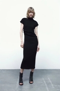 ZARA KISS 夏季新款女装修身宽领短袖紧身迷笛洋装 2335175 800