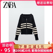 ZARA KISS秋季新款女装翻领长袖条纹毛衣针织开衫外套5536131 104