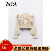 ZARA KIS新款女装叠层灯笼袖木耳边镂空针织拼接毛衣7200100 712