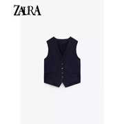 ZARA KISS夏季新款 女装 排扣饰方领无袖背心马甲套装7569272 712