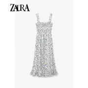 ZARA KISS夏新款女装方领收腰花朵印花迷笛吊带洋装5216064 712
