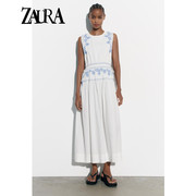 ZARA KISS夏季新款法式花朵刺绣白色吊带直领连衣裙女0881323 250