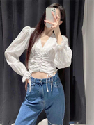 UR AO春夏新款抽绳系带灯笼袖纯棉V领短款衬衫女上衣YL06R2CN2002