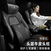 特斯拉汽车真皮头枕model3 model Y/X/S护颈枕座椅内饰车载腰靠垫