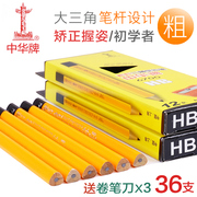 中华牌大三角铅笔儿童用矫正握姿HB铅笔粗杆幼儿园儿童宝宝初学者练字粗小学生用三棱形文具铅笔安全无毒批发