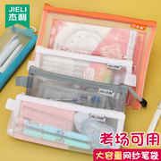 杰利 透明网纱笔袋高考袋初中考试专用文具拉链文件袋小学生用a4男女ins儿童铅笔袋大容量简约考场袋收纳定制