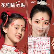 杰利花钿眉心贴汉服古装女童花印美人新娘纹身贴防水女额头贴纸水印卡通贴纸安全可爱六一儿童节表演装饰