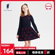 polo sport 女童长袖连衣裙2021春季新品翻领娃娃领拼接蝴蝶结裙