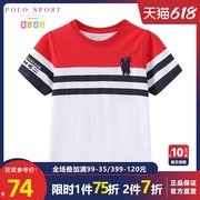 polosport男童短袖t恤2021夏新款刺绣大马标时尚条纹儿童短袖上衣