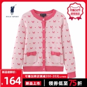 polo sport 女童洋气针织开衫2021年春季粉色蝴蝶结潮毛衣外套