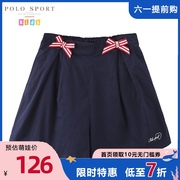 polo sport 女童阔腿短裤2021夏季新款松紧腰蝴蝶结洋气儿童裙裤