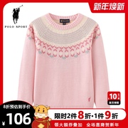 polo sport 童装女童毛衣2020秋冬新品圆领套头粉色甜美针织衫