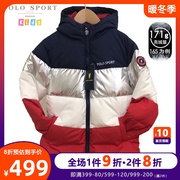 polo sport 童装男童羽绒服棉袄亮面中长款撞色连帽加厚款羽绒