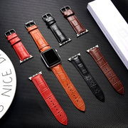 适用苹果手表apple watch5表带鳄鱼纹 手工真皮3代38/42mm真皮商务苹果iwatch4代40/44mm表带创意个性替换带