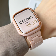 适用 苹果iwatch7手表带藕粉色树脂 apple watch1234567se女款苹果表带iwatch se新款电镀表壳潮牌40/45mm