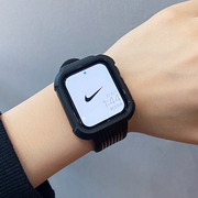 lingnaiqi 苹果手表iwatch7代6/se/5/4/3/2代保护壳一体硅胶表带卡西欧运动腕带黑色松针绿个性潮牌防水防汗