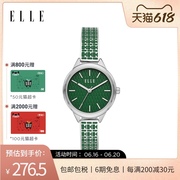 ELLE女表女复古祖母绿小圆盘表不锈钢表链石英腕表小绿表ELL25046